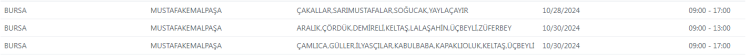 27 Ekim Pazar günü başlayacak olan kesintileriBursa'nın 11 ilçesini etkileyecek.