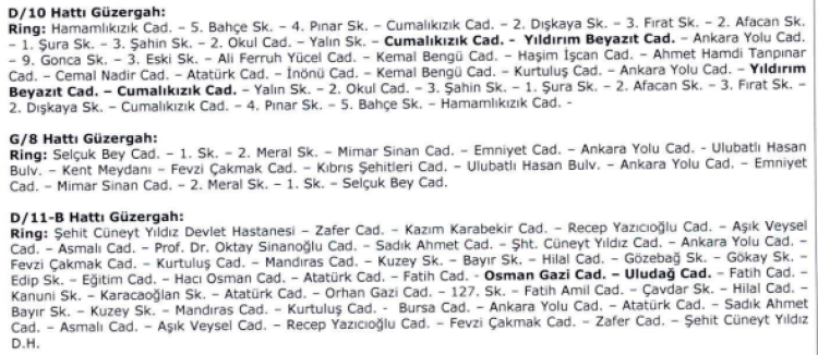 UKOME kararı doğrultusunda D/10, G/8, D/11-B, 95/A, 3/G, 28/A ve B/37 numaralı hatlarda güzergah revizyonu yapılması uygun bulundu.