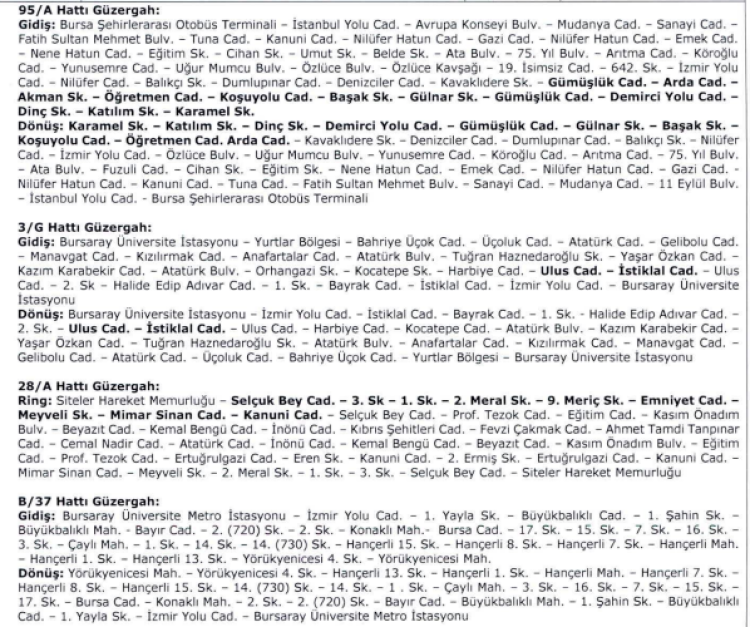 Alınan kararların önümüzdeki süreçte uygulamaya alınmasıyla birlikte Bursa’da bazı hatların güzergahları değişecek, bazı bölgelerde ise yeni düzenlemeler için çalışmalar devam edecek.