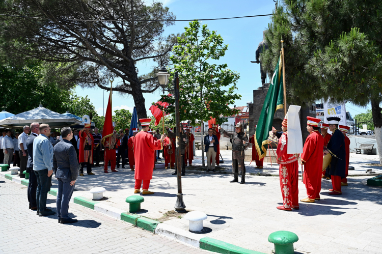 Ardından Mehteran marşları eşliğinde oluşan kortej yürüyüşü gerçekleşti. Tören alanında kürsüye çıkan Uluabat Mahalle Muhtarı Ramazan Hamamcı, günün anlam ve önemine dair yaptığı konuşmasında şu ifadelere yer verdi: