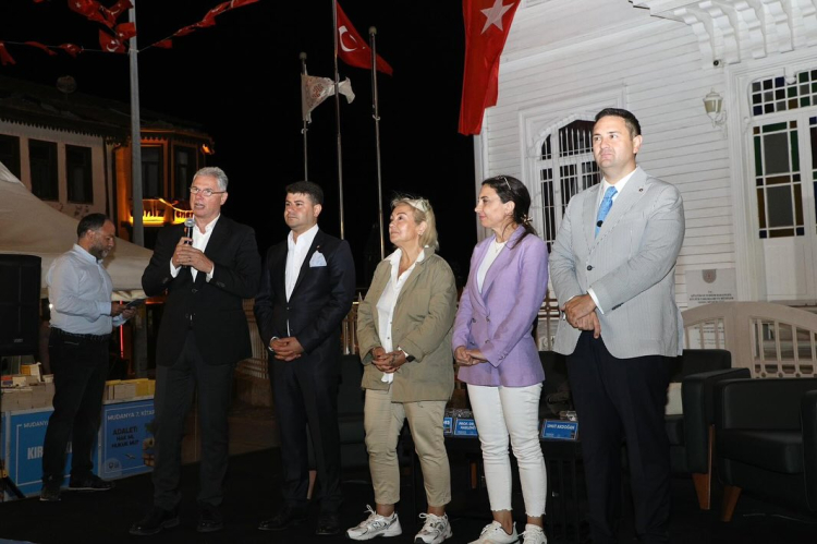 Mudanya Belediye Başkanı Deniz Dalgıç ise, “Sarı saçlı mavi devin önümüze koyduğu ilkelere sıkı sıkı sarılırsak, hiçbir şekilde bize havada, karada ölüm yok. Mutlaka kazanacağız. Hiç de şüphemiz yok. Hem dayanışmalıyız, hem birbirimize sahip çıkmalıyız, hem devrimlere sahip çıkmalıyız” ifadelerini kullandı.