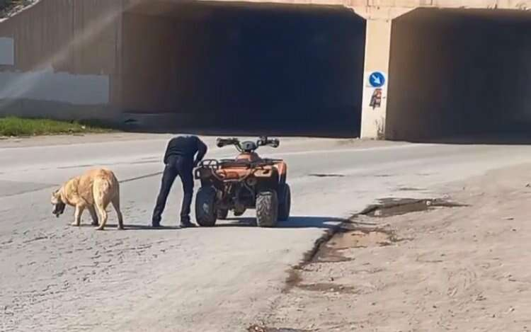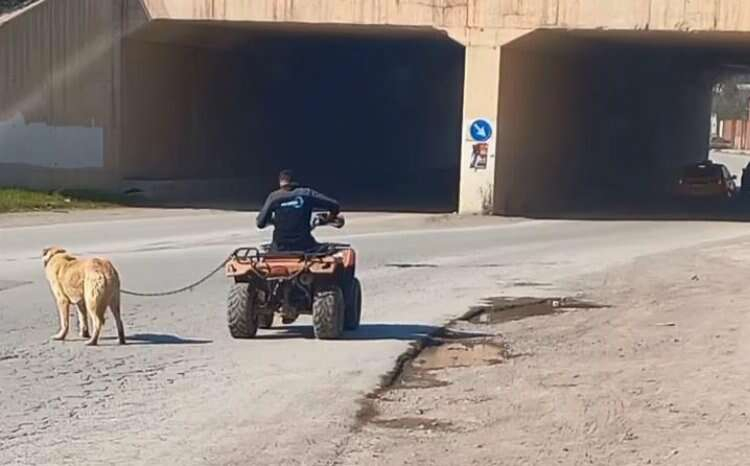 Daha sonra motoru çalıştıran kişi, hareket ederek köpeği sürükledi.