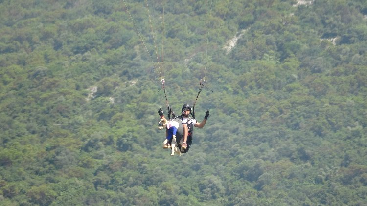 Köpeğini, uçuş yapmaya hazırladığı dönem hakkında da bilgi veren Oflaz, “Yamaç paraşütü yapmaya gittiğim zamanlarda Badem de benimle geliyordu. Uçuş hazırlıkları sırasında yanıma koşup havlıyordu. Ben de köpeğimle uçmaya karar verdim. Şimdi, birlikte uçup festivallere katılıyoruz. Birlikte güzel anılar biriktirip, eğlenmiş oluyoruz. Badem ile birlikte olan uçuşlarım çok keyifli geçiyor. Havalandığımızda çok sakin duruyor. Ayrıca, arabaya, motosiklete binmeye bayılıyor” diye konuştu.