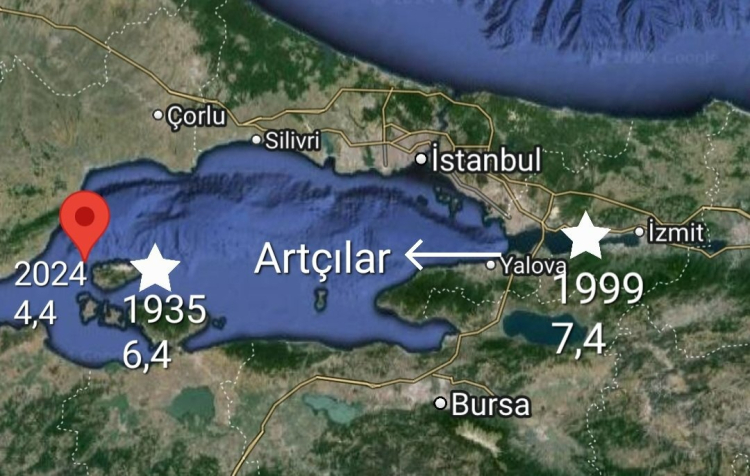 Marmara Çukurluğunu güneyden sınırlayan ve 1999 7,4 depreminin artçılarının geliştiği Yalova-Çınarcık fayının batıya devamı üzerinde 1935 6,4 Marmara Adası depreminin oluştuğu yerde gelişmiştir.