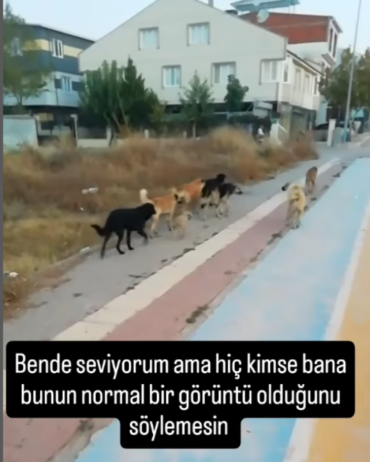 Köpek çetesi videosuna, "Ben de seviyorum ama hiç kimse bana bunun normal bir görüntü olduğunu söylemesin." notunu ekledi.