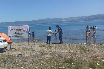 Bursa'da İznik Gölü'nün en tehlikeli bölgesi olan ve 3 yıl içinde 32 kişinin boğulduğu alanda kuralları çiğneyen vatandaşlar, girilmez tabelasına havlu asıp yüzmeye devam etti.