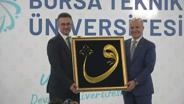 Konuşmanın ardından BTÜ Rektörü Prof. Dr. Naci Çağlar, YÖK Başkanı Prof. Dr. Özvar'a hediye takdim etti.