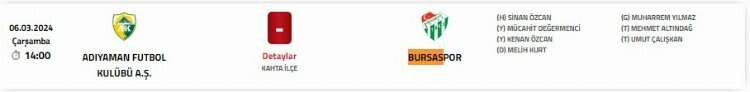 Buna göre, yarın 14.00’te başlayacak olan Adıyaman FK-Bursaspor maçını Sinan Özcan yönetecek.