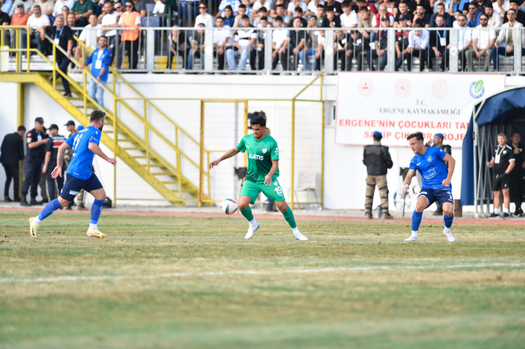 53’üncü dakikada Ergene Velimeşe’den Arif Özerli ceza sahası içinde Bursasporlu Mücahit Can Akçay’ı düşürdü. Hakem Efe Tanrıverdi penaltı noktasını gösterdi. Topun başına geçen Ahmet İlhan Özek Bursaspor’u iki farklı üstünlüğe taşırken bu sezonki 4’üncü golünü kaydetti. Bu golden iki dakika sonra Mücahit Can Akçay rakibine yaptığı hareket nedeniyle doğrudan kırmızı kartla oyun dışında kaldı. İki takım da kalan bölümde 10’ar kişi mücadele etti. İki farklı üstünlüğü yakalayan Bursaspor tamamen oyunun kontrolünü eline aldı. Mücadelenin 80’inci dakikasında Yeşil Beyazlılar’da İlhan Depe takımı adına 3’üncü golü Ergene Velimeşe filelerine gönderdi. İlerleyen dakikalarda başka gol olmayanca Bursaspor 3’üncü maçında 3’üncü galibiyeti 3 golle elde etti ve liderliğini sürdürdü.
