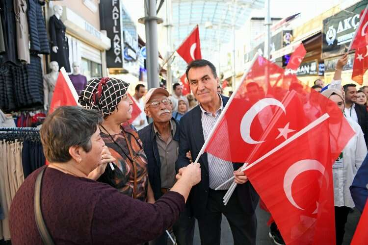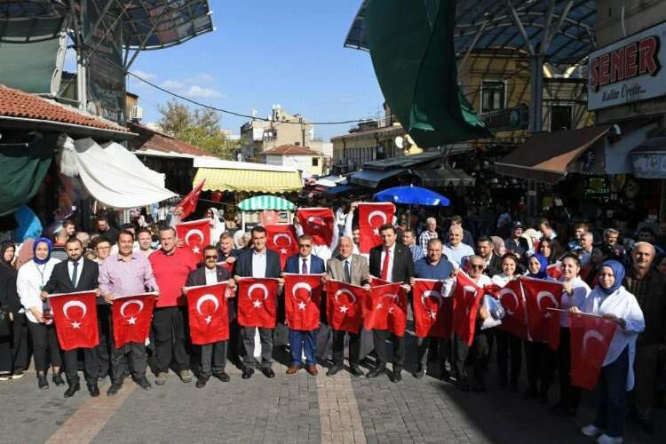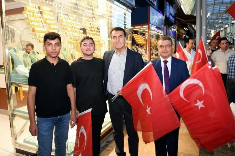 Bursa'da Başkan Dündar'dan çarşı esnafına Türk Bayrağı