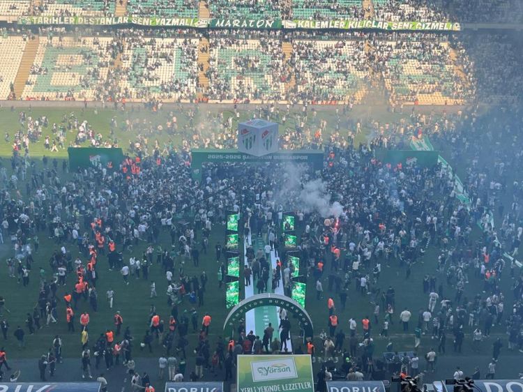 Stadyumda yapılan etkinlikte binlerce taraftar, meşaleler, bayraklar ve marşlarla unutulmaz bir atmosfer oluşturdu. Yönetim, teknik heyet ve futbolcular sahaya ortasına kurulan şampiyonluk sahnesine çıkarak taraftarları selamladı. Yapılan seremoninin ardından binlerce taraftar hep bir anda sahaya indi. Haftalar öncesinden yapılan uyarılara rağmen sahaya inen taraftarları polis ekipleri ve güvenlik görevlileri dışarıya çıkarmak için mücadele verdi. Bursaspor amigolarının yaptığı anonslar sonrasında sahaya giren taraftarlar yeniden tribüne çıktı.