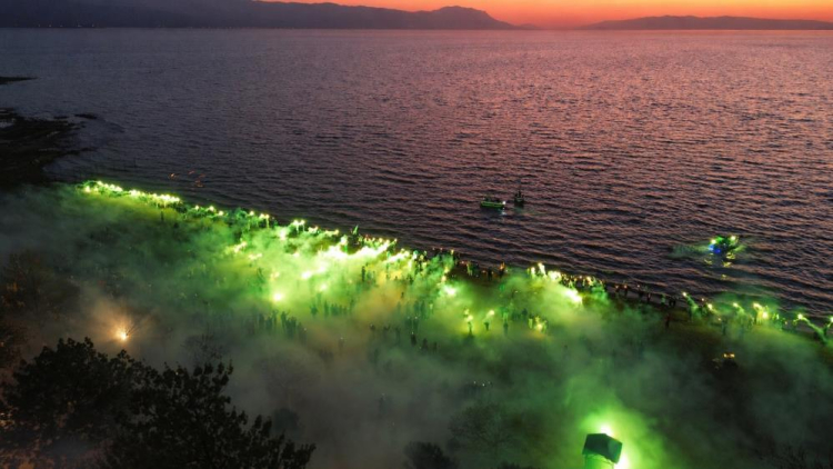 İznik sahilinde gerçekleştirilen kutlamalarda meşaleler yakılırken, marşlar ve tezahüratlar eşliğinde büyük coşku yaşandı.