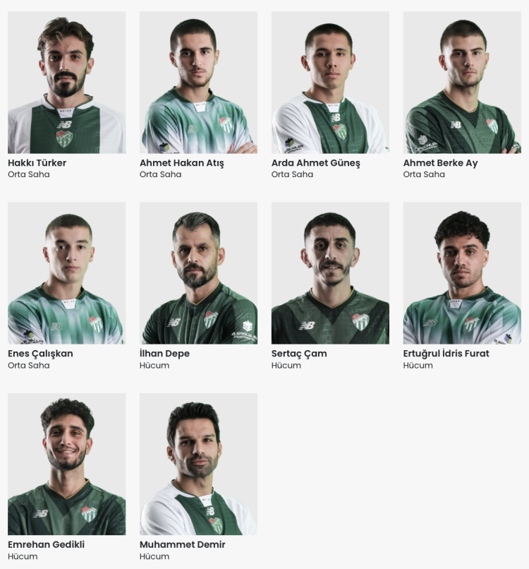 Nesine 2. Lig’de şampiyonluk hedefleyen Bursaspor, yeni sezonun kadrosunu resmi sitesinde yayınladı.
