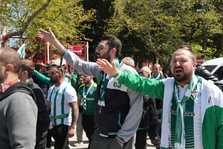 Balıkesirspor taraftarları da takım eşofmanları ile Bursaspor taraftarına destek verdi. "Balkes-Bursa el ele hep beraber tribüne" sloganları atan taraftarlar maçı izlemek için stada beraber girdi.