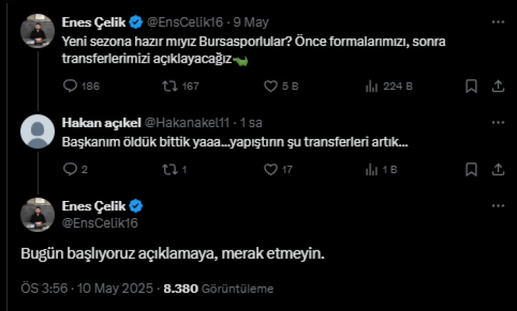 Bursaspor Başkanı Enes Çelik'ten transfer duyurusu: Başlıyoruz