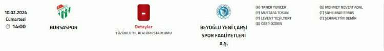TFF 2. Lig'in 25. haftasında Bursaspor'un Beyoğlu Yeni Çarşı Spor Faaliyetleri A.Ş. ile oynayacağı maçın hakemi belli oldu.