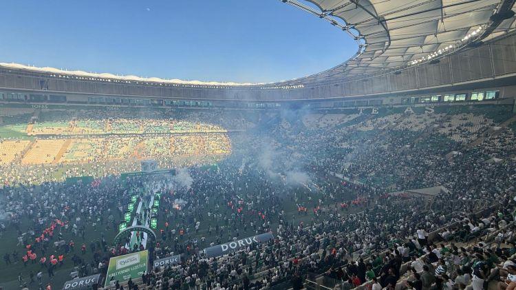 Yaşanan gelişme sonrası kupa törenine ara verilirken, yeşil-beyazlı futbolcular güvenlik gerekçesiyle soyunma odasına döndü.