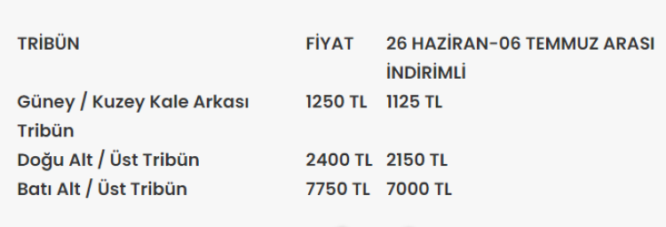 Bursaspor'un kombine bileti fiyatları 1. 250 TL ile 7 bin 750 TL arasında değişiyor.