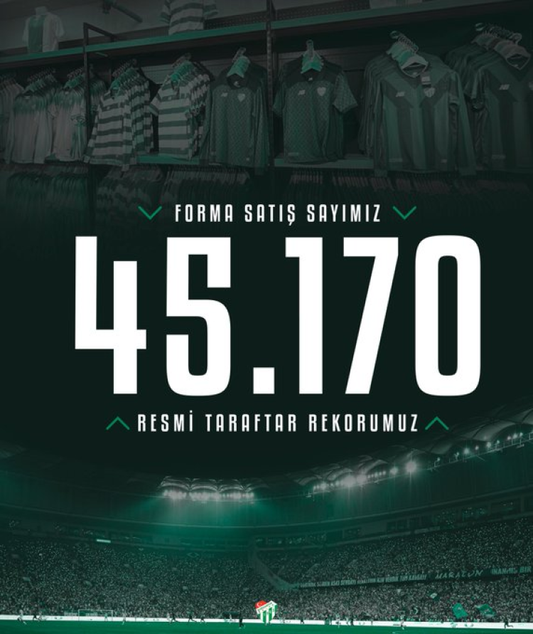 Bursaspor taraftarının kulübe olan desteği bir kez daha rakamlara yansıdı. Yeşil-beyazlı kulüp, resmi taraftar forma satışında 45 bin 170 adede ulaşarak önemli bir rekora imza attı.
