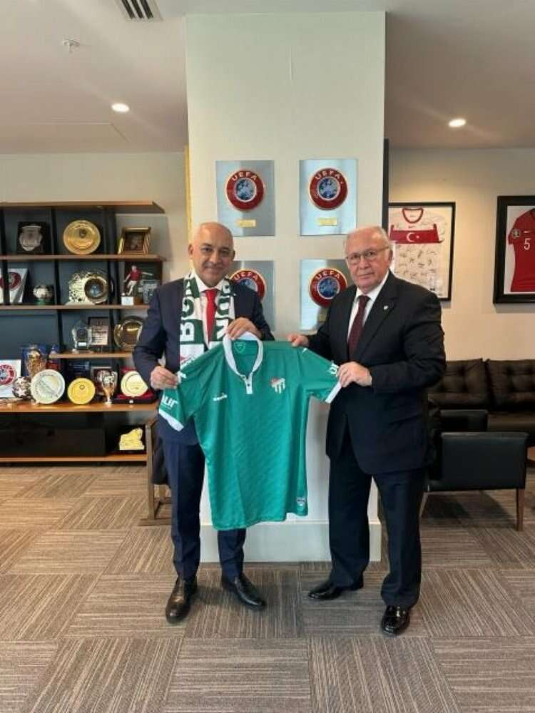 Bursaspor Kulübü Başkanı Sinan Bür, Türkiye Futbol Federasyonu Başkanı Mehmet Büyükekşi'ye nezaket ziyaretinde bulundu.
