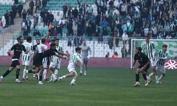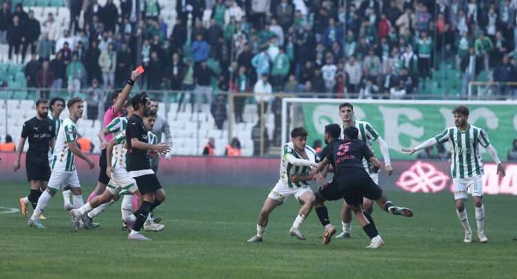 Bursaspor’da ise Bilal Güney direkt, Çağatay Yılmaz da ikinci sarı karttan kırmızı kart gördü.