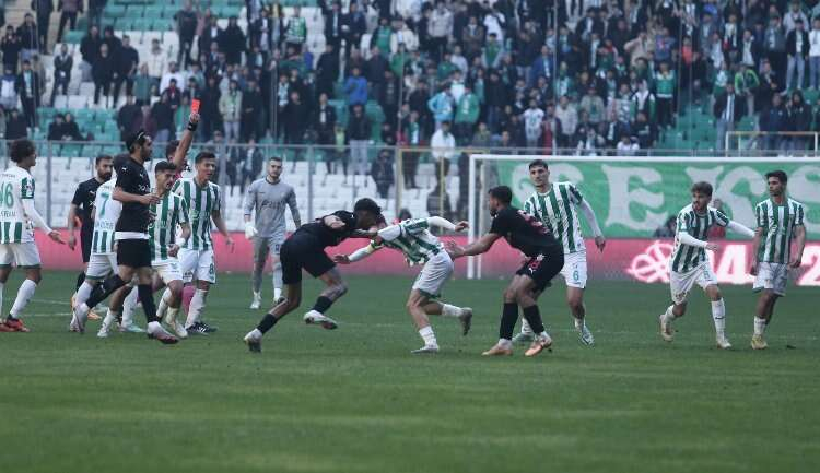Bursaspor - Diyarbekirspor maçında kavga çıktı! 5 kırmızı kart...