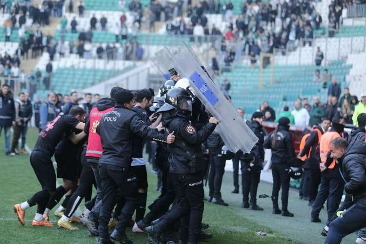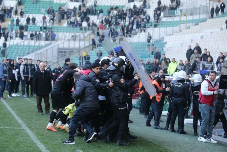 Olayları araya giren polis, güvenlik güçleri ve iki takım teknik heyeti yatıştırmaya çalıştı.