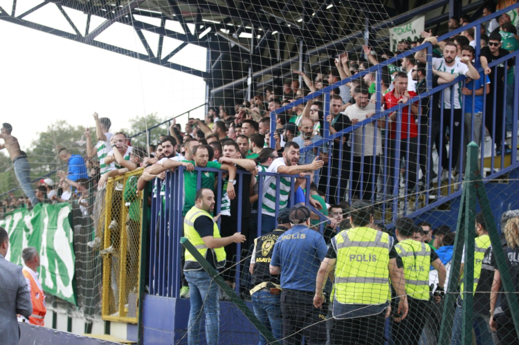 TFF 3’üncü Lig 1’inci Grup’ta deplasmanda Düzcespor ile karşı karşıya gelen Bursaspor, sezona 2-0'lık galibiyet ile sezona başladı. Maç oynanırken polis ve taraftarlar arasında gergin anlar yaşanırken, ilk yarının sonuna doğru 6 kişi hariç bütün Bursasporlu taraftarlar tribünleri terk etti. Maç boyunca takımlarına destek veren 6 taraftar, son düdükle beraber takımı tribüne çağırarak selamladı.