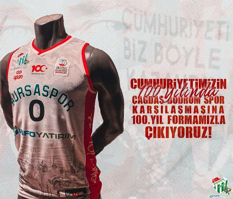 Bursaspor İnfo Yatırım’dan yapılan açıklama öncesi “Zafer, Zafer benimdir diyebilenin; başarı, başaracağım diye başlayanın ve başardım diyebilenindir.” mesajının paylaşılmasının ardından “Cumhuriyetimizin 100. yılında, 29 Ekim'de Çağdaş Bodrum Spor karşılaşmasına 100. yıl formamızla çıkıyoruz! 100. Yıl Hatıra Formamız yarın Tofaş Spor Salonu seyirci girişinde satışa sunulacaktır.” ifadelerine yer verildi.