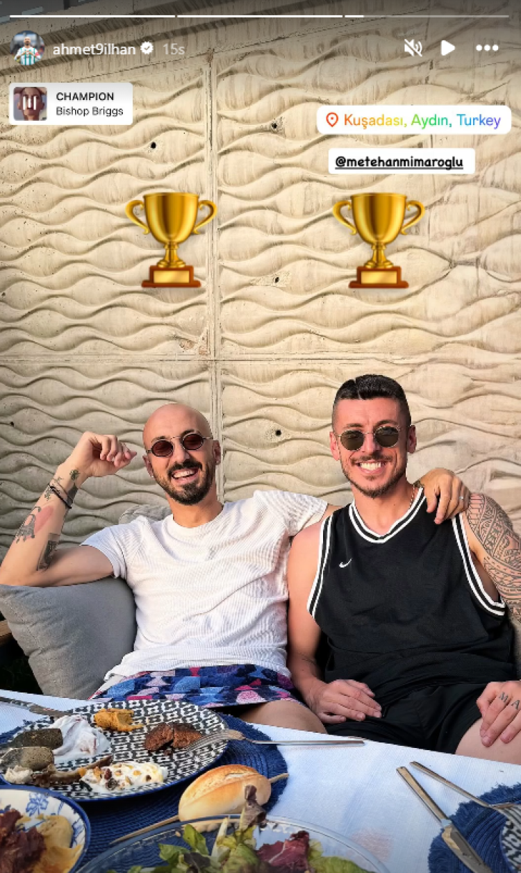 Bursaspor’un transferi için girişimde bulunduğu Gençlerbirliği forması giyen Metehan Mimaroğlu ve ailesiyle birlikte tatilini sürdüren Ahmet İlhan, sosyal medyadan da paylaşımlar yapıyor.