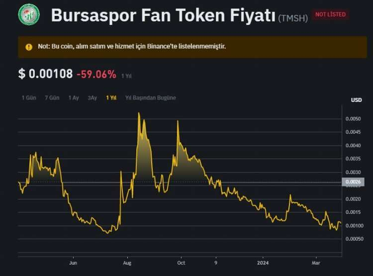 Bursaspor Fan Token (TMSH) bir yılda yüzde 60 oranında değer kaybetti.