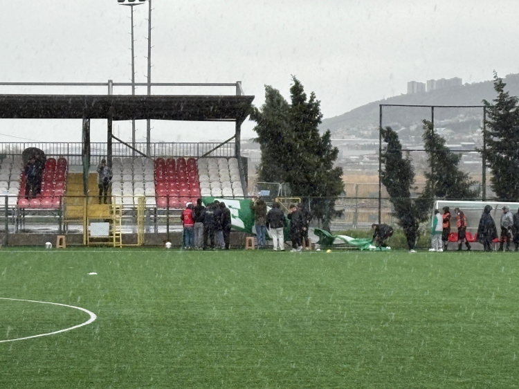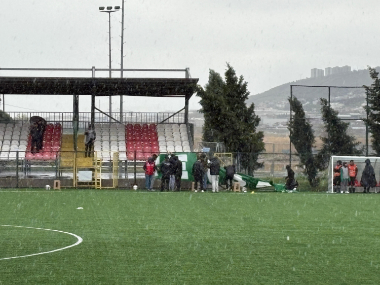 Fırtına nedeniyle bazı taraftarlar kendilerini korumak için devre sarasında koşarak stattan ayrıldı.
