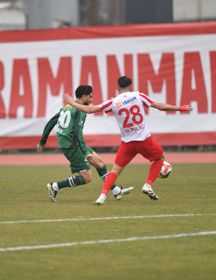 Maçın 37. dakikasında ceza sahası içinde topla buluşan Halil’in vuruşu, defansa da çarpınca kaleci ters ayakla yakalandı. Kaleye yönlene topa son anda Kahramanmaraş ekibinin defansı müdahale etti. Gol sesi çıkmayan ilk yarı 0-0 sona erdi.
