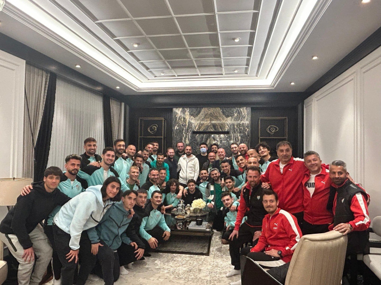 Bursaspor takımı, şampiyonluk kutlamalarının ardından Başkan Enes Çelik’e geçmiş olsun ziyaretinde bulundu.