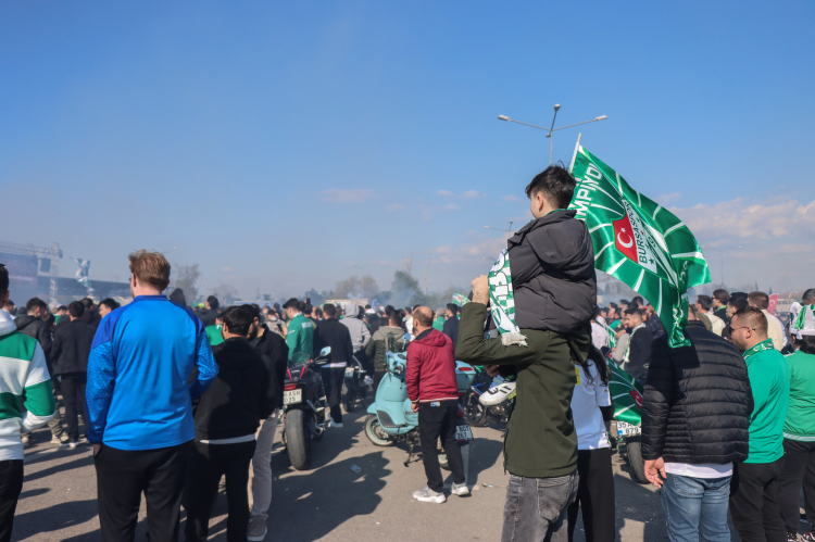 Bursa'da binlerce taraftar, Atatürk Spor Kompleksi Matlı Stadyumu yanındaki otopark alanında toplanarak karşılaşmayı dev ekrandan takip etti.
