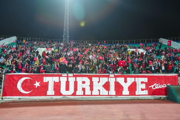 Bulgaristan deplasmanında Ay-Yıldızlıları 90 dakika boyunca destekleyen Türk taraftarın bulunduğu noktada Teksas yazılı bir pankart dikkatlerden kaçmadı.