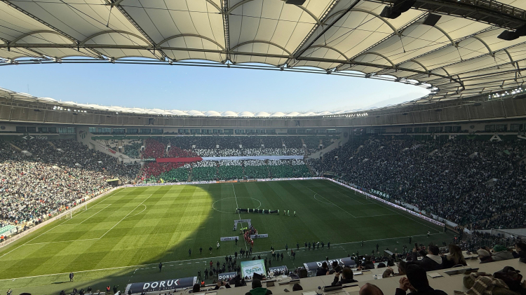 Karşılaşma öncesi Bursaspor taraftarı, Filistin bayrağının oluştuğu muhteşem bir koreografiye imza attı.