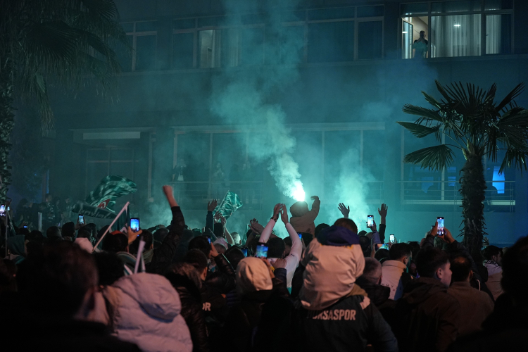 Deplasmanda Artin Hopaspor'u 2-1 mağlup edip lig bitimine 2 hafta kala şampiyonluğunu ilan eden Bursaspor maçın ardından Özlüce İbrahim Yazıcı Tesisleri'ne geldi. Yeşil-beyazlı taraftarlar takımı tesis etrafında meşaleler ve tezahüratlarla karşıladı. Yoğun ilgiyle karşılaşan takımın otobüsü kalabalıktan ilerleyemedi. Tesise çıkan kulüp yöneticileri, teknik heyet ve futbolcular, taraftarı el sallayarak selamladı. Besteler eşliğinde şampiyonluğu kutlayan takım ve taraftarlar eski teknik direktör Pablo Martin Batalla'ya da selam gönderdi.