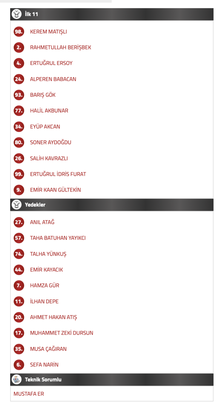 İşte Bursaspor’da sahaya çıkacak isimler; Kerem Matışlı, Rahmetullah Berişbek, Alperen Babacan, Ertuğrul Ersoy, Barış Gök, Eyüp Akcan, Soner Aydoğdu, Salih Kavrazlı, Ertuğrul İdris Furat, Halil Akbunar, Emir Kaan Gültekin.