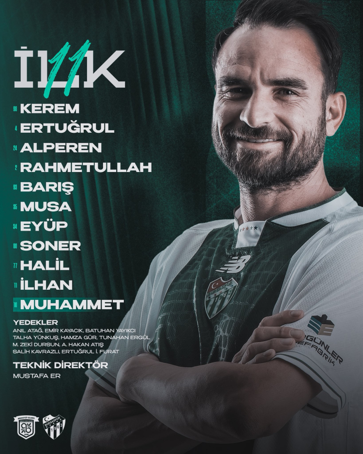 Bursaspor Teknik Direktörü Mustafa Er, şu isimlere şans verdi;