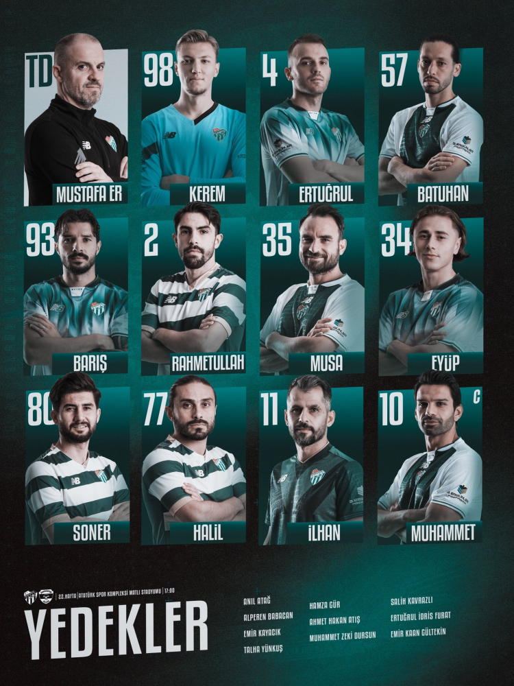 Bursaspor-Adanaspor maçının 11’leri belli oldu. Yeşil-beyazlı takımın bu önemli maçı 17.00’de başlayacak.