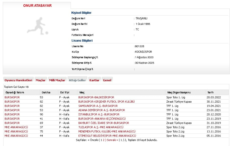 2017 ile 2022 yılları arasında Bursaspor forması giyen Onur Atasayar, 7 gol atabilmişti.