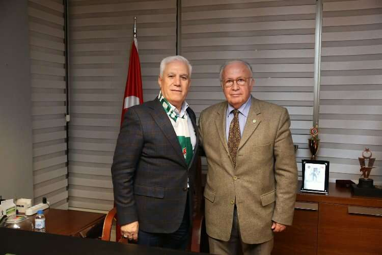 CHP Bursa Büyükşehir Belediye Başkan adayı Mustafa Bozbey, Bursaspor İnfo Yatırım Başkanı Sezer Sezgin ile AK Parti Mudanya İlçe Belediye Başkan Aday Adayı ve Bursa Büyükşehir Belediyespor Başkanı Gökhan Dinçer Bursaspor yönetimini ziyaret ederek başarı dileklerinde bulundu.