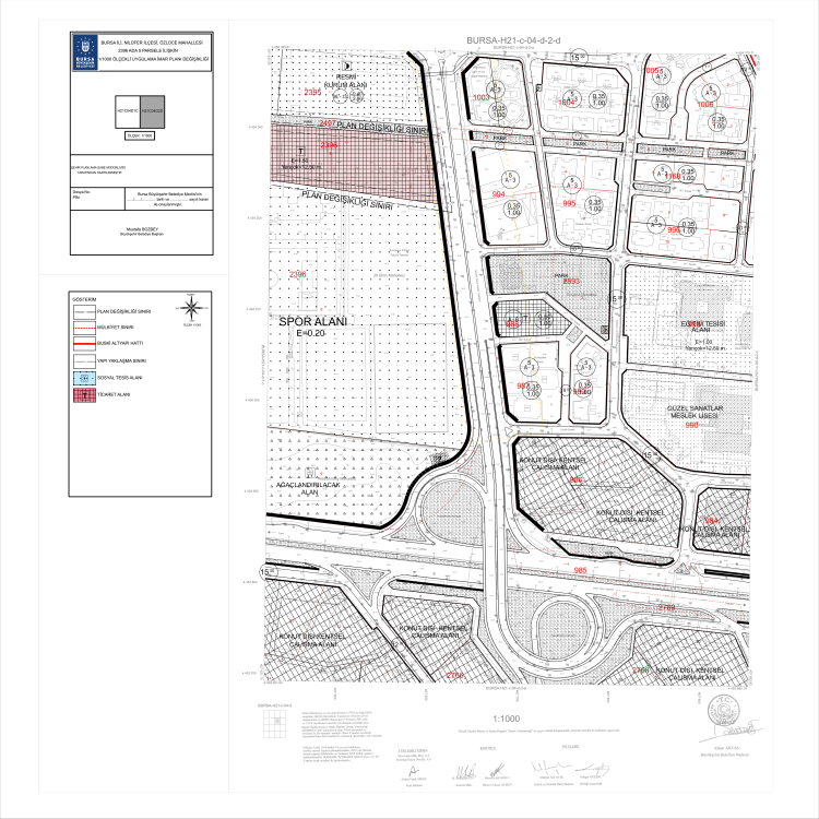 Alınan imar kararları Bursa Büyükşehir Belediyesi Başkanı Mustafa Bozbey'in imzasıylaaskıya çıkartıldı.