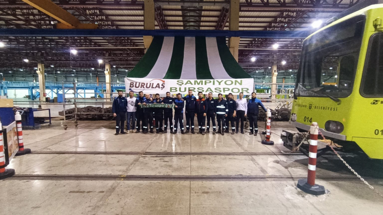 Bursaspor'un şampiyonluğu sonrası Bursa Ulaşım Toplu Taşıma İşletmeciliği (BURULAŞ), yetki ve görev alanlarını yeşil beyaz bayraklarla donattı.