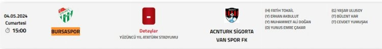 TFF 2. Lig Beyaz Grup son haftasında oynanacak Bursaspor-Vanspor FK maçının hakemi açıklandı.