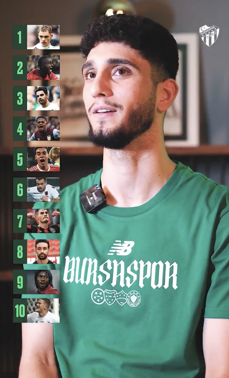 Bursaspor’un resmi sosyal medyasına verdiği demeçte 22 yaşındaki futbolcu listenin başına Florian Wirtz’i koyarken, tek Türk isim ise olarak ise Muhammet Demir’i tercih etti. Muhammet’le takım arkadaşı da olan Emrehan Gedikli, tecrübeli golcüyle 3’üncü sırada yer verdi.