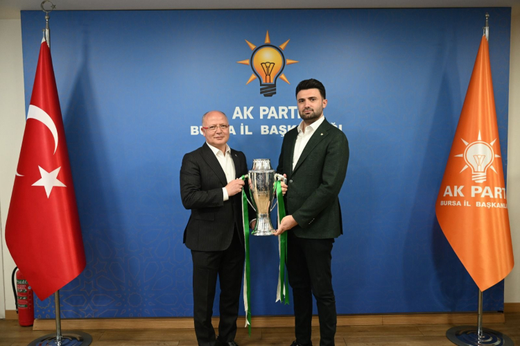 TFF 3. Lig’de şampiyonluğa ulaşan Bursaspor’da Enes Çelik başkanlığındaki yönetim kurulu üyeleri sezon boyunca kendilerine destek veren siyasi partilerin il yönetimleriyle bir araya geldi. Başkan Çelik ve yönetim kurulu üyeleri bu kapsamda ilk olarak AK Parti Bursa İl Başkanlığını ziyaret etti. Şampiyonluk kupasının da sergilendiği ziyarette AK Parti Bursa İl Başkanı Davut Gürkan ve il yöneticileri hazır bulundu. Davut Gürkan Bursaspor Başkanı Enes Çelik ve yönetim kurulu üyelerine şampiyonluk dolayısıyla tebriklerini iletti.