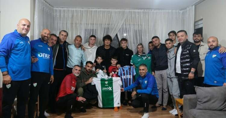 Bursaspor yönetimi ve teknik heyeti, Yusuf Emir Bolat'ı Bursa'daki evinde ziyaret etti.
