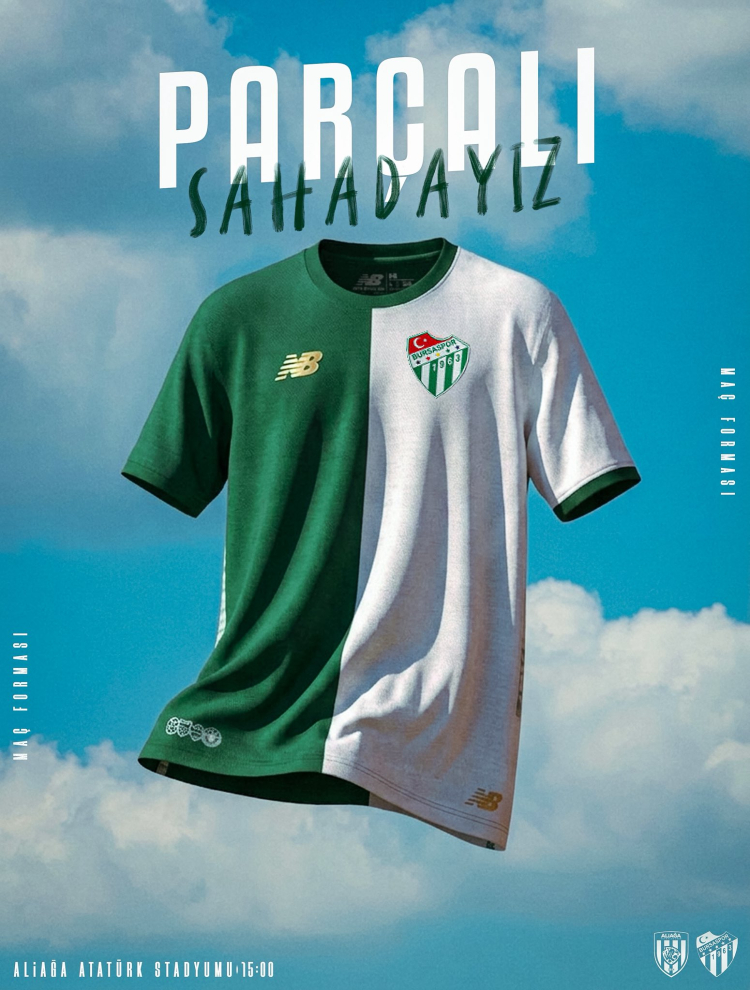 Bursaspor, TFF 2. Lig'deki son maçına Aliağa karşısında çıkacak. Yeşil-beyazlı futbolcular bu sezon ilk kez parçalı forma giyecek.